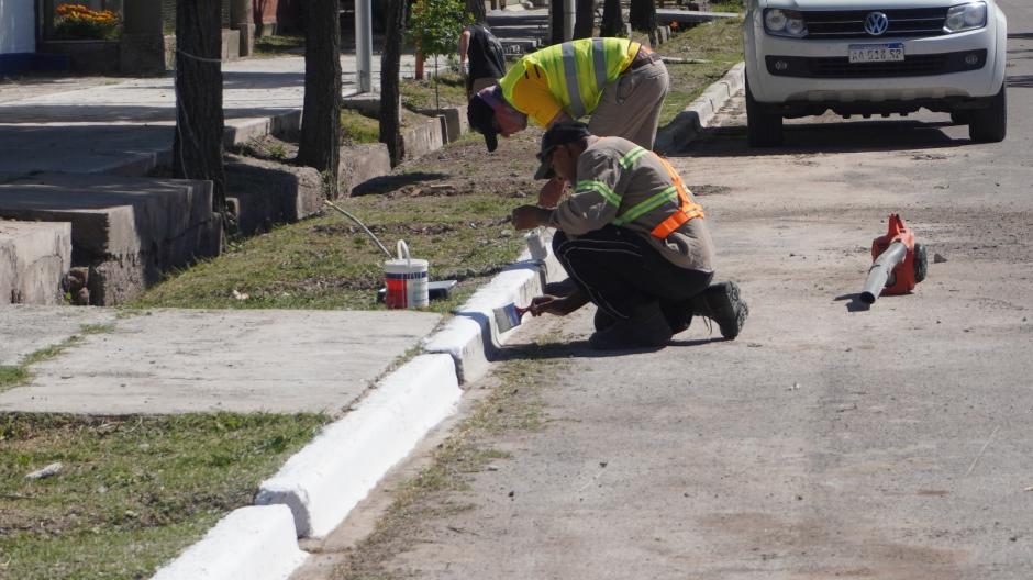 Se realizan tareas de mantenimiento y pintura de cordones en inmediaciones de la escuela Ríos Mendocinos.
