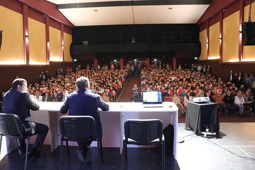 Por la noche del miércoles, Barañao brindó una disertación a más de 500 alumnos de las escuelas secundarias del lugar y a vecinos, en el Cine Teatro Antonio Lafalla. “Esto ha sido una inyección de optimismo, porque en épocas de crisis General Alvear muestra un gran potencial” dijo el Secretario de Ciencia y Tecnología de la Nación.